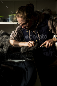 Download Best Seller “Female saddler standing in workshop, stuffing leather saddle with horse hair.” from PhotoDune for category “misc”. Related Tags: 1 person, 40s adult, 45-50 years, arts and culture, Caucasian Ethnicity, Colour Image, craft, craftsmanship, craftswoman, day, england, expertise, female, filling, hand tool, indoors, leather, leather worker, mature adult, middle-aged woman, Oxfordshire, photography, riding tack, saddle, skill, skilled craftsmanship, standing, traditional, traditional culture, united kingdom, vertical, waist up, woman, women, work tool, working, working life, workmanship, workshop
