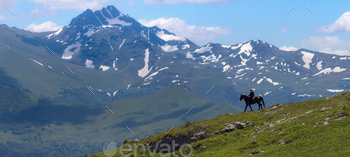 Download Best Seller “Mountain landscape and shepherd on horse. In the background – mount Magisho. Caucasus mountains.” from PhotoDune for category “misc”. Related Tags: animal, caucasus, Caucasus Mountains, cherkessia, cloud, cloudy, day, environment, freedom, horse, Karachay, Karachay-cherkessia, landscape, man, mount, mountain, mountains, nature, one, outdoor, outside, panorama, people, russia, shepherd, snow, sunny, top, travel, valley